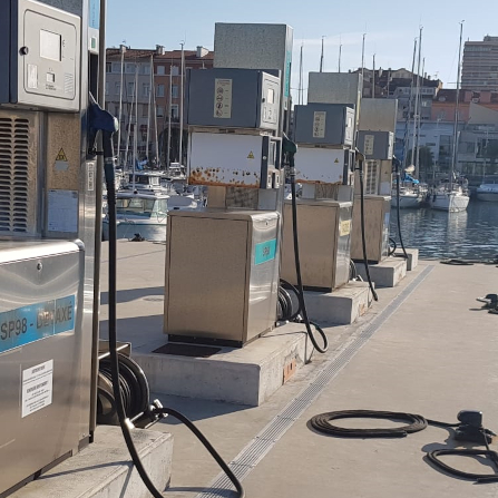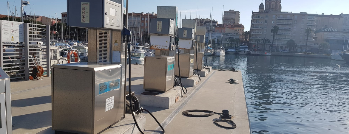 Nous disposons de quatres pompes sur la station service du port de Saint Raphael. Une pompe de SP95, une de SP98 détaxé, une pompe diesel, et une pompe diesel détaxé.
